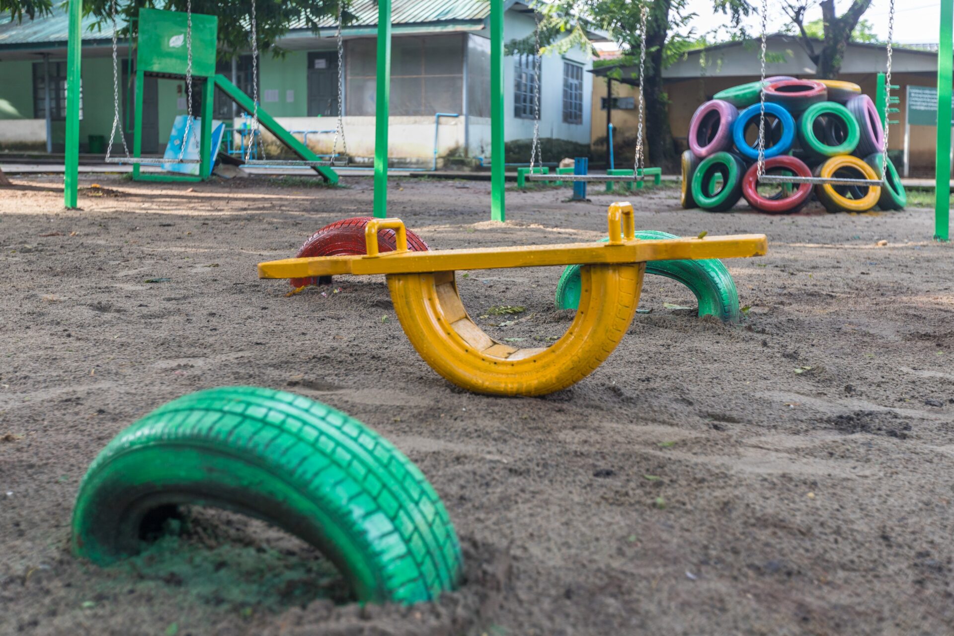 We, Elite Petrochemical Co., Ltd created playground which was used recycle tire for fun and physical activity for the childern who attend the BEHS No - 11 Pathein.